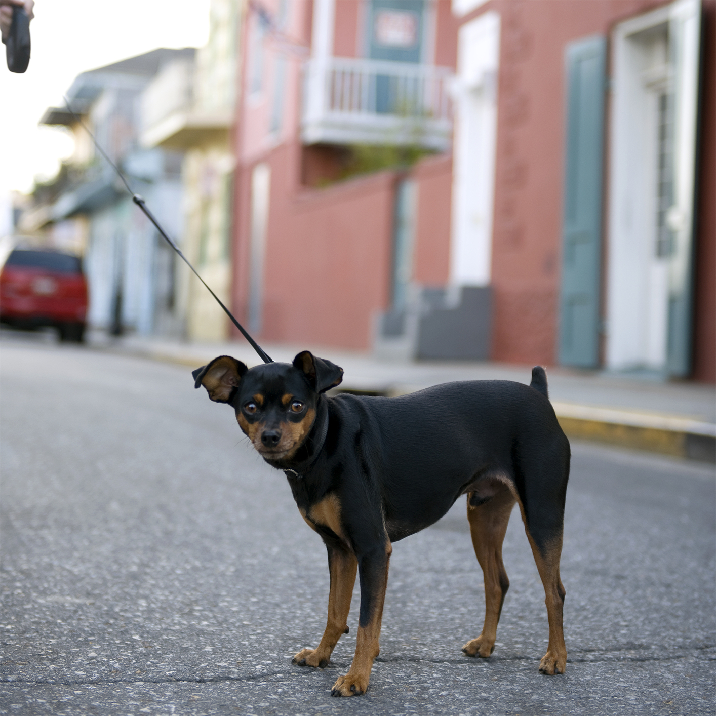 Not all dogs are comfortable meeting your gregarious greeter. Always stop 15 feet away and ask first. It’s the polite thing to do. If the other dog looks uncomfortable or scared, walk away quickly. Sticking around will make it much worse.